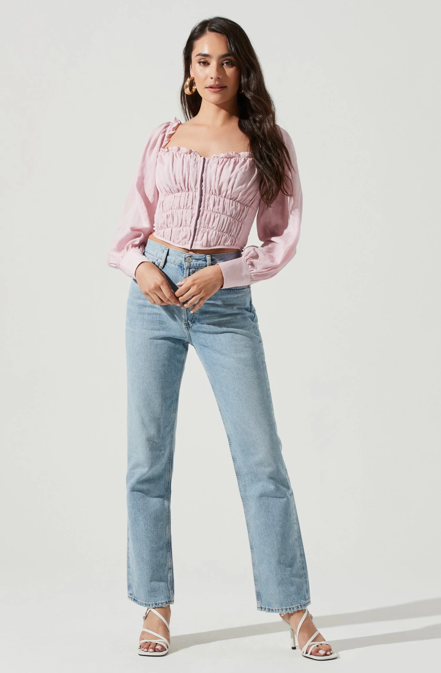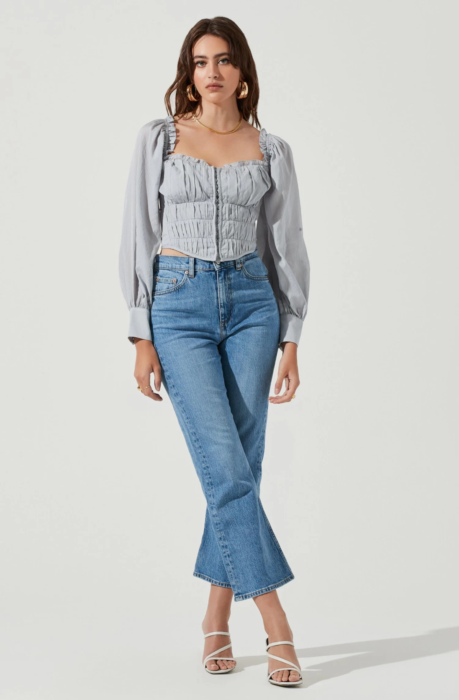 Amber Sweetheart Neck Smocked Long Sleeve Corset Top
