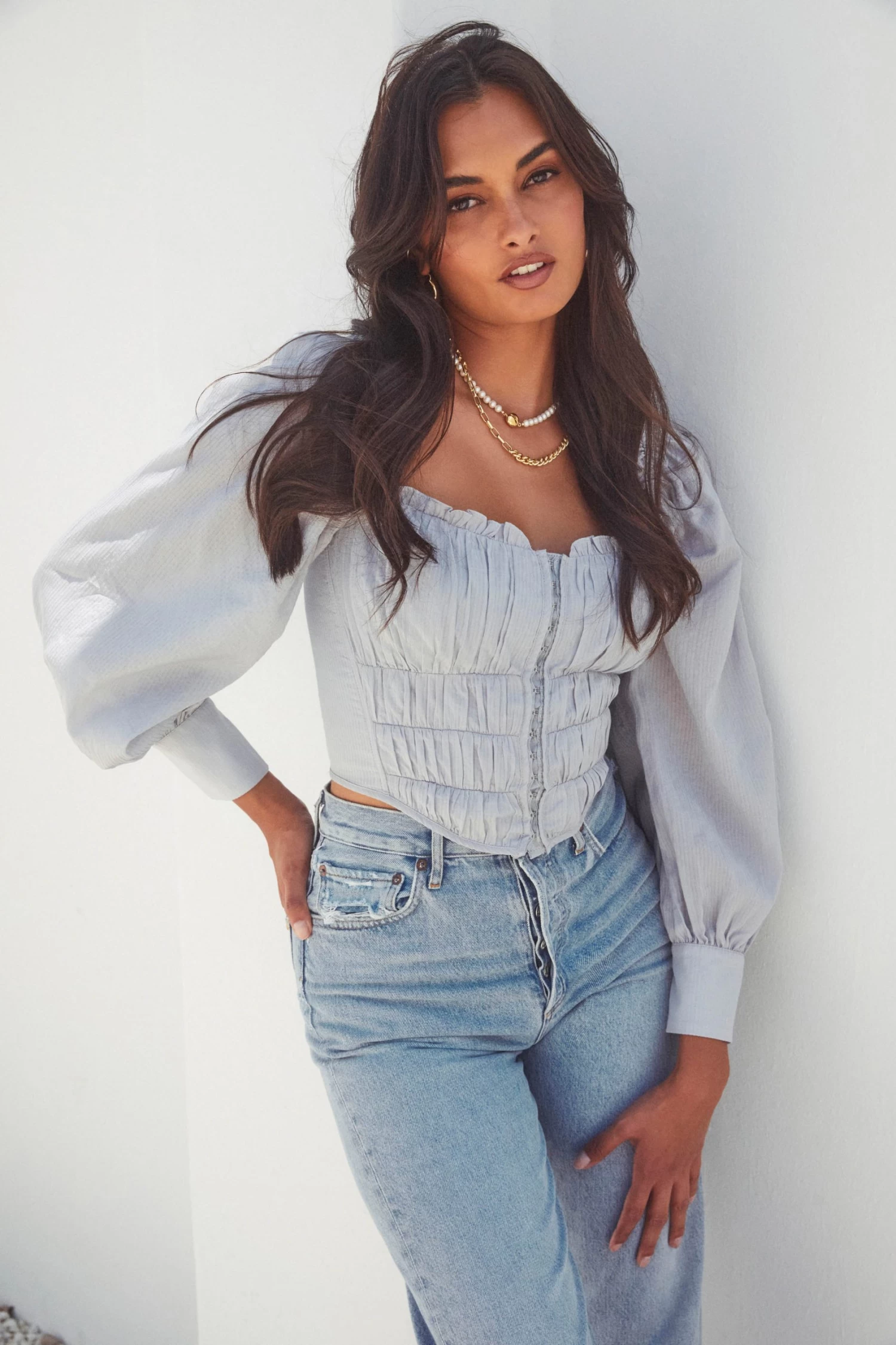 SKU: YXN0C 1695267423 Categories: Clothing, Tops Tags: 22.01SP, Blue, Corset, Gift guide, No-returns, SHOPALL, Spring Edit, Vacation, Vt::Tops::Neckline::Sweetheart Neck, Vt::Tops::Pattern::Texture, Vt::Tops::Sleeve Length::Long Sleeve, Vt::Tops::Style & Occasion::Retro, Vt::Tops::Type::Crop Top