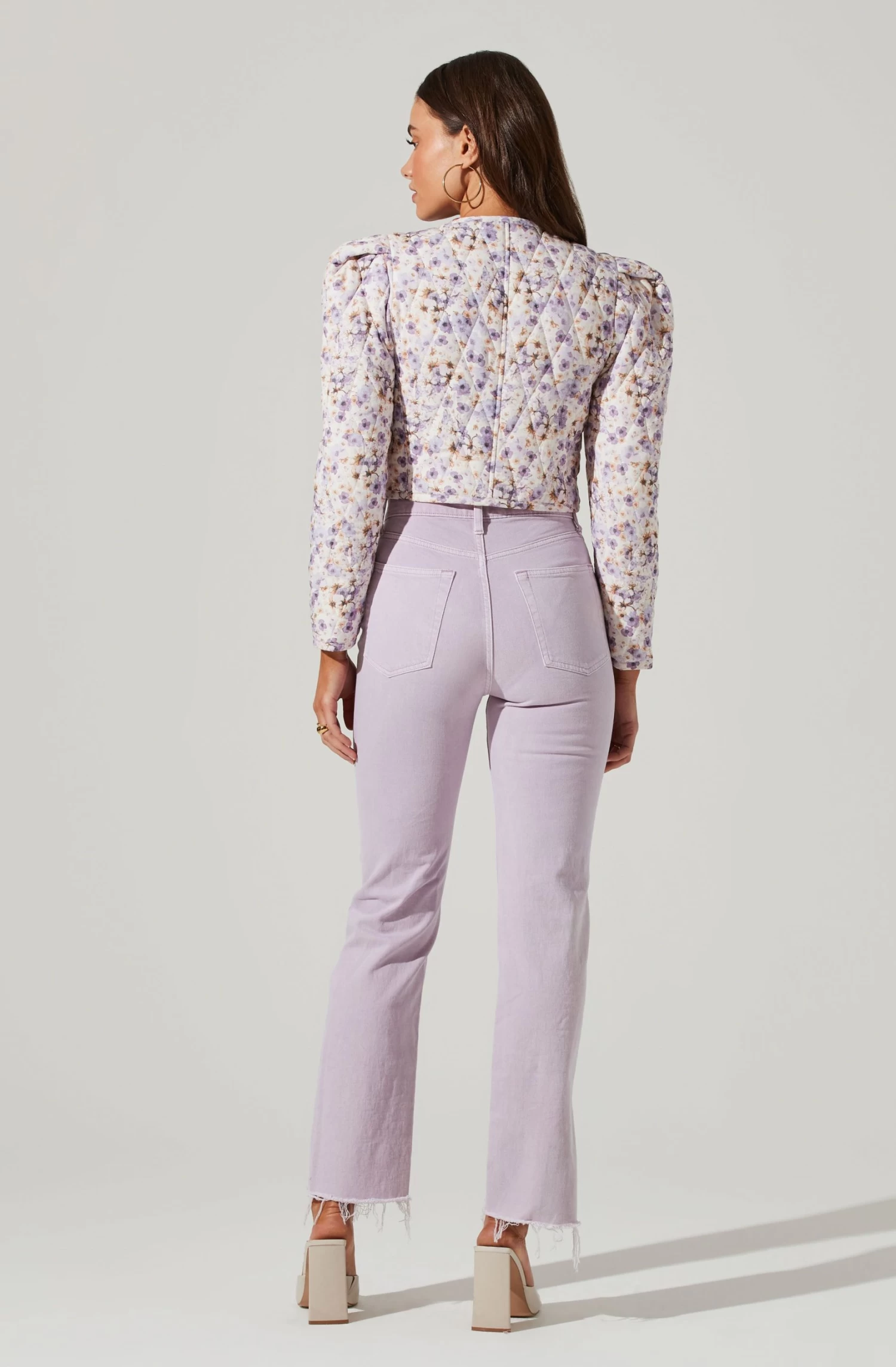 Brea Floral Quilted Cropped Puff Sleeve Jacket