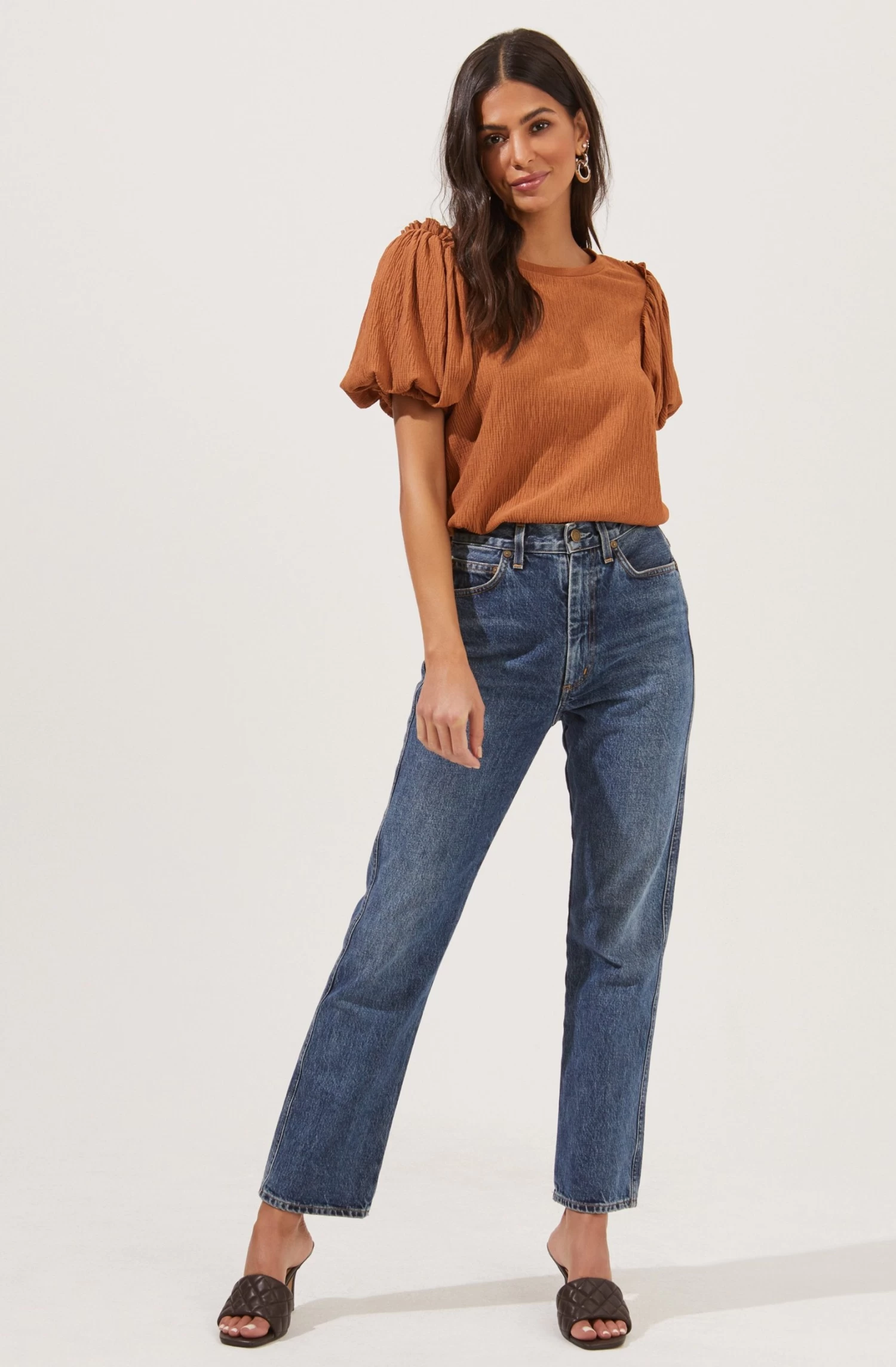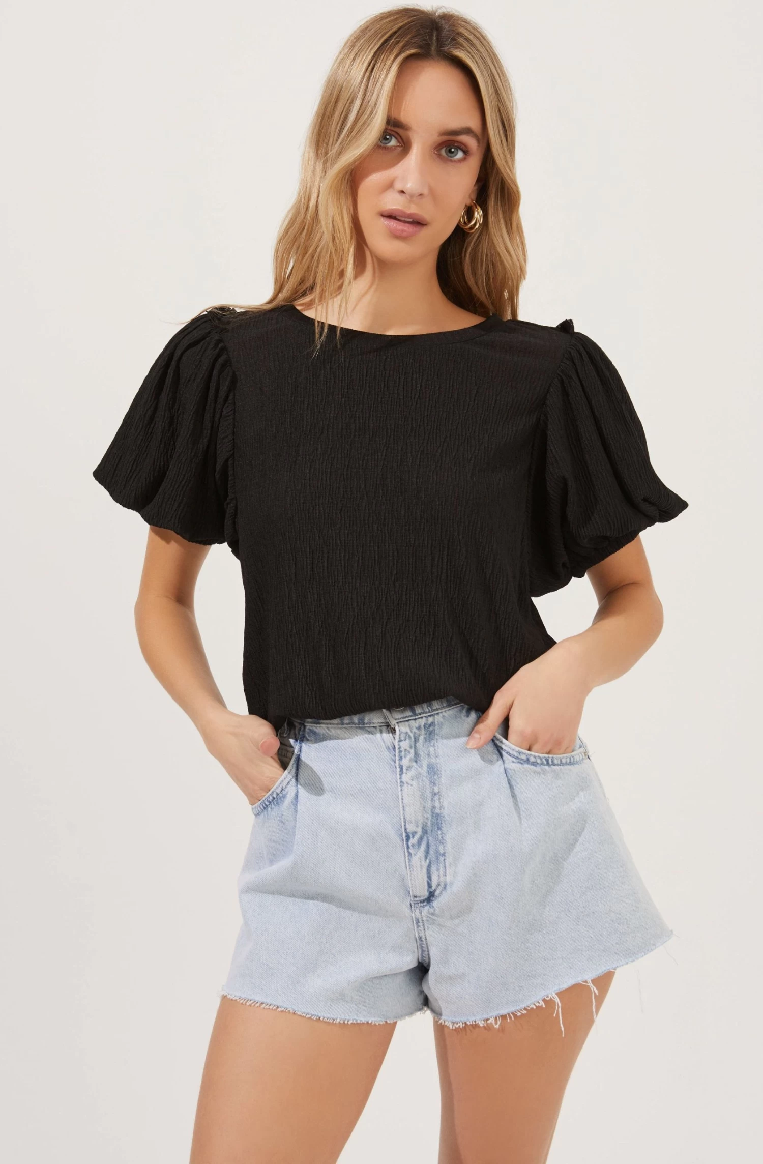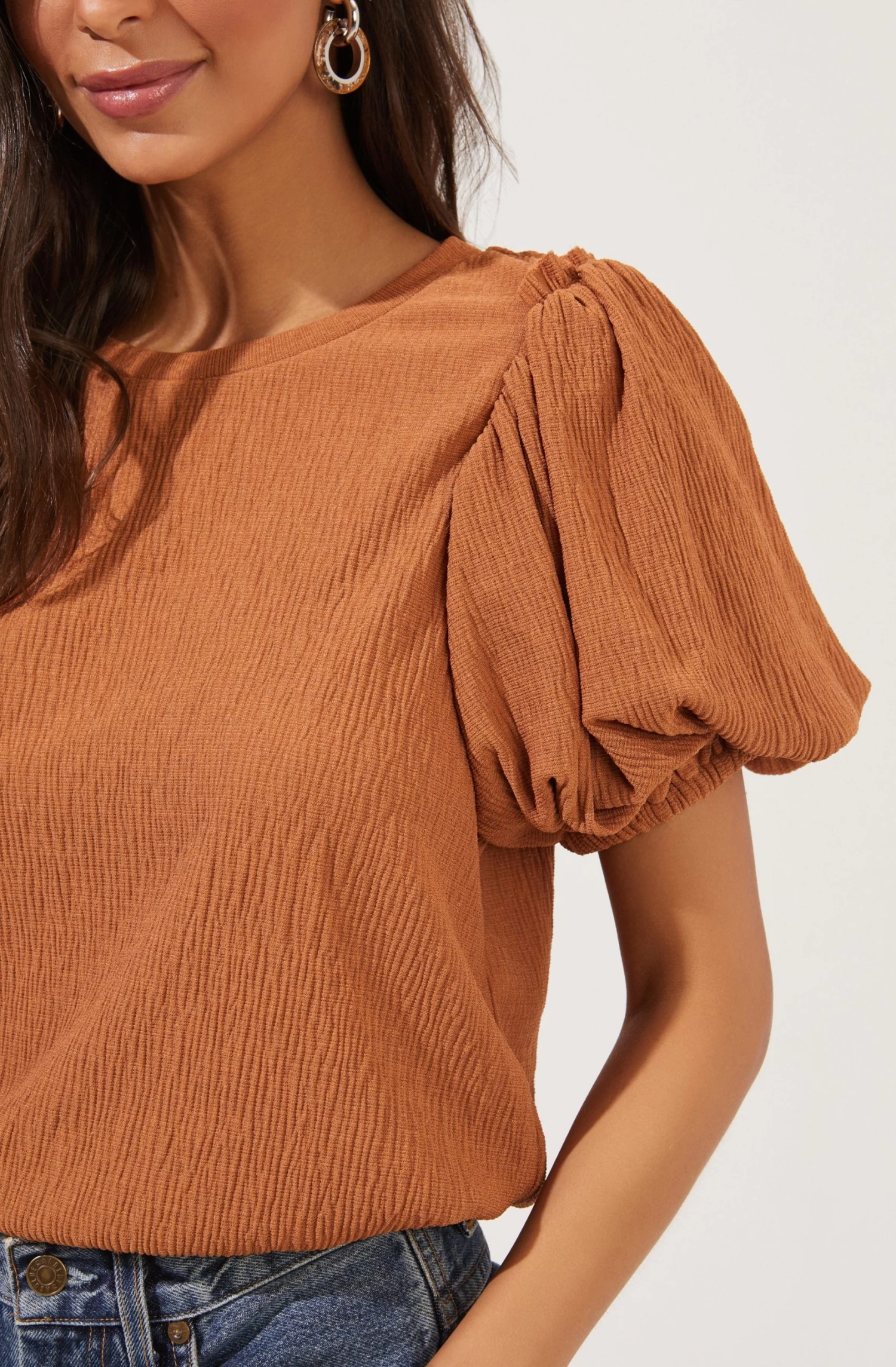 Bubble Sleeve Crew Neck Top