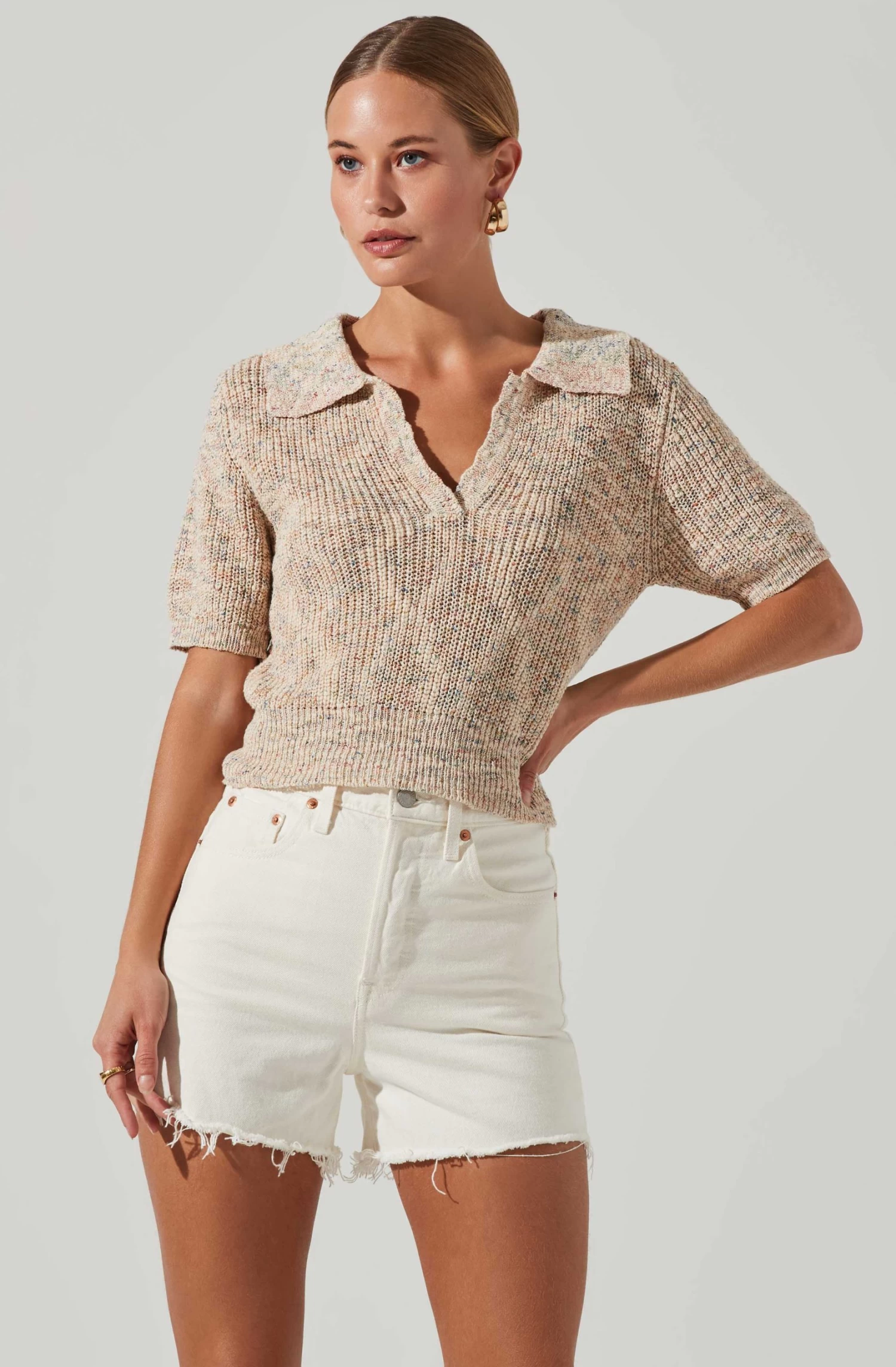 SKU: YXN0C 1695269038 Categories: Clothing, Sweaters Tags: 23.03COLL, BRUNCH, Fall Sweater, Office, SHOPALL, Spring Break, TO_BE_MERGED, Vacation, Vt::Sweaters::Neckline::Collared, Vt::Sweaters::Pattern::Texture, Vt::Sweaters::Sleeve Length::Short Sleeve, Vt::Sweaters::Style & Occasion::All Day Wear, Vt::Sweaters::Style & Occasion::Brunch, Vt::Sweaters::Style & Occasion::Classic, Weekend