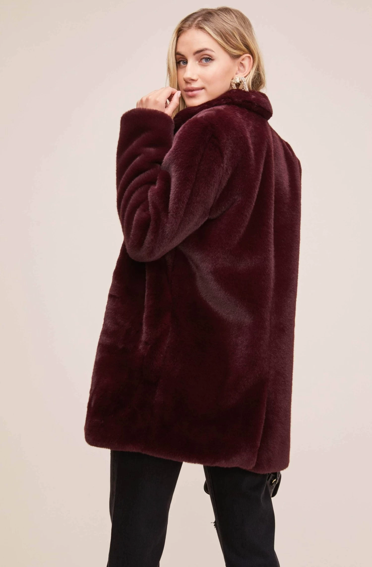 Bundle up in the Cleo Coat! This luxe faux fur style features a notched collar, long sleeves and side pockets.