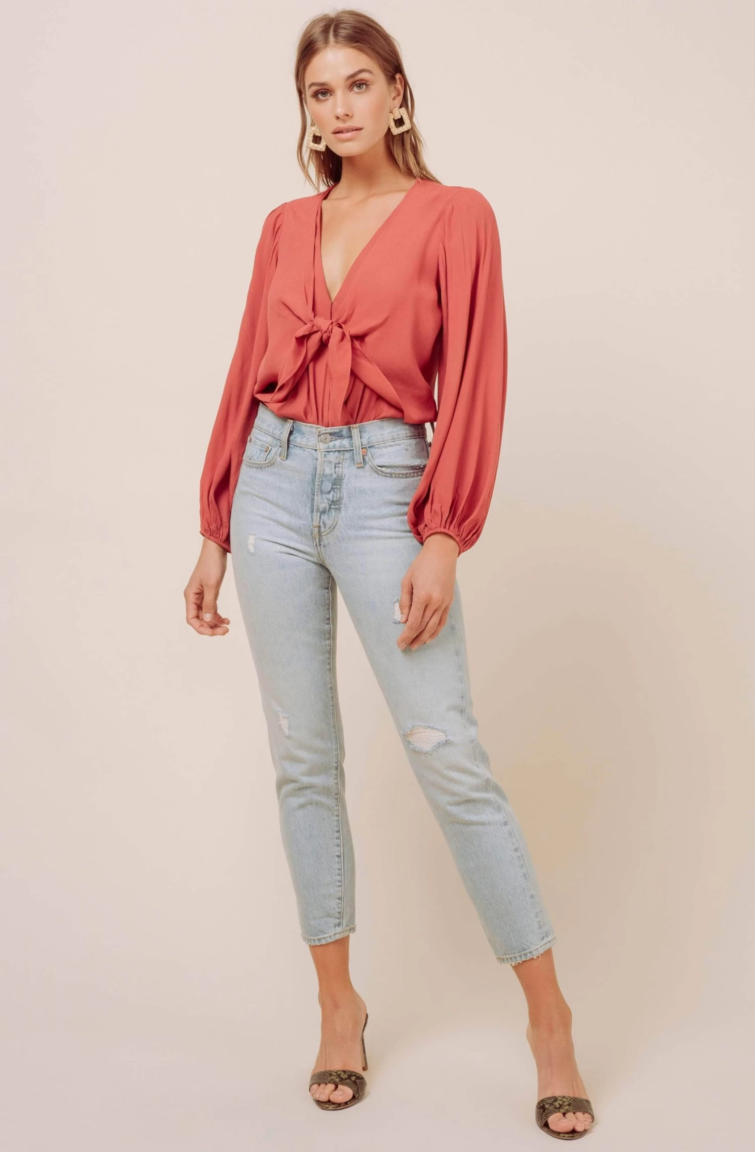 Always romantic, the Cory Long Sleeve Bodysuit is ready to get up close and personal. It features a plunging neckline that meets at a tie front that accentuates the bust. Long, statement sleeves.