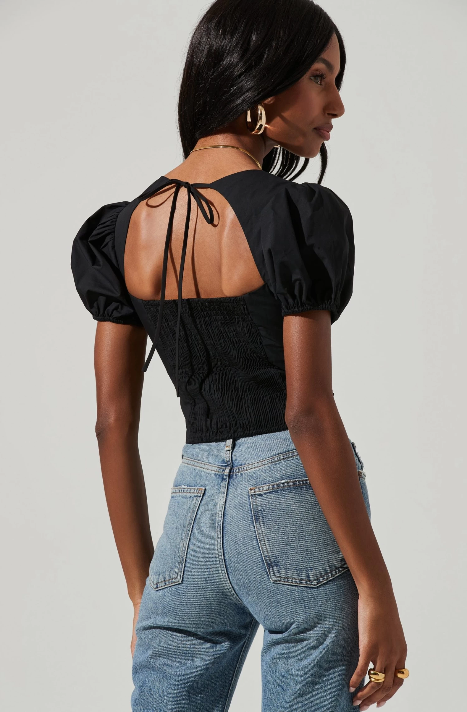 Cupped Short Puff Sleeve Hook And Eye Top