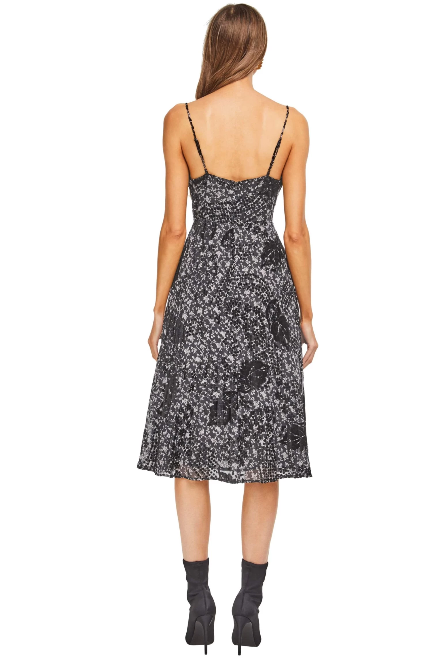 100% Polyester, Length: 46 1/2″ (Size M), Zipper Closure, Dry Clean Only, Midi Dress, Faux Velvet, Model is Wearing Size S, Model’s Measurements: Height 5’10” // Bust 34″ // Waist 24″ // Hips 34″, Fits True to Size, Style#ACDR100011