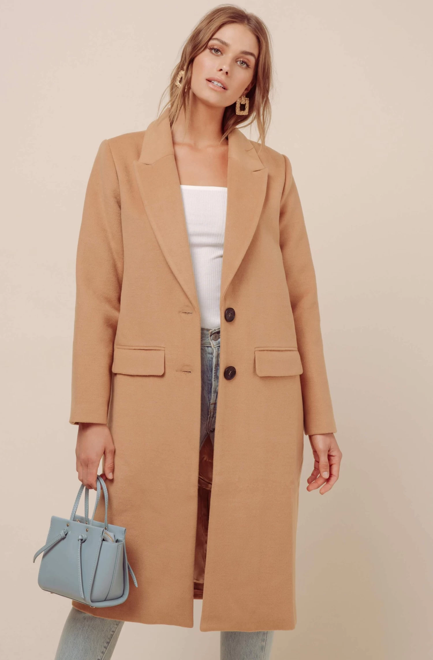 Neutral coat? Check! The Jeane Coat is your outerwear staple this season. It features a classic notched collar that descends to a buttoned front. Flap pockets at the hips. Oversized silhouette with a vented back. Long sleeves.