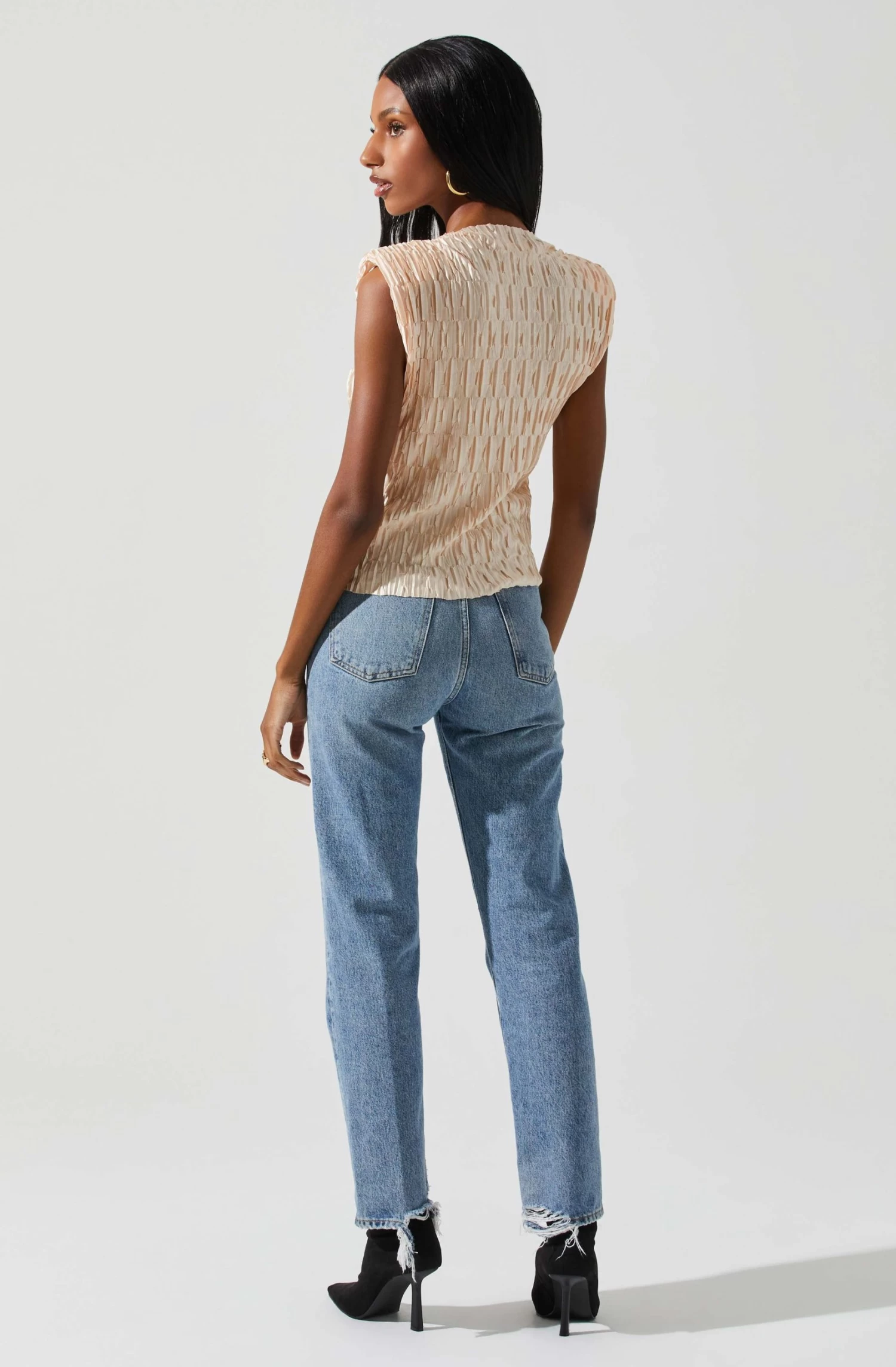 Textured message: Dimensional detailing sets apart our sleeveless Jorja Top, finished with a high neckline. Pairs perfectly with our matching pants as a sophisticated set, whether for date night or a special occasion.