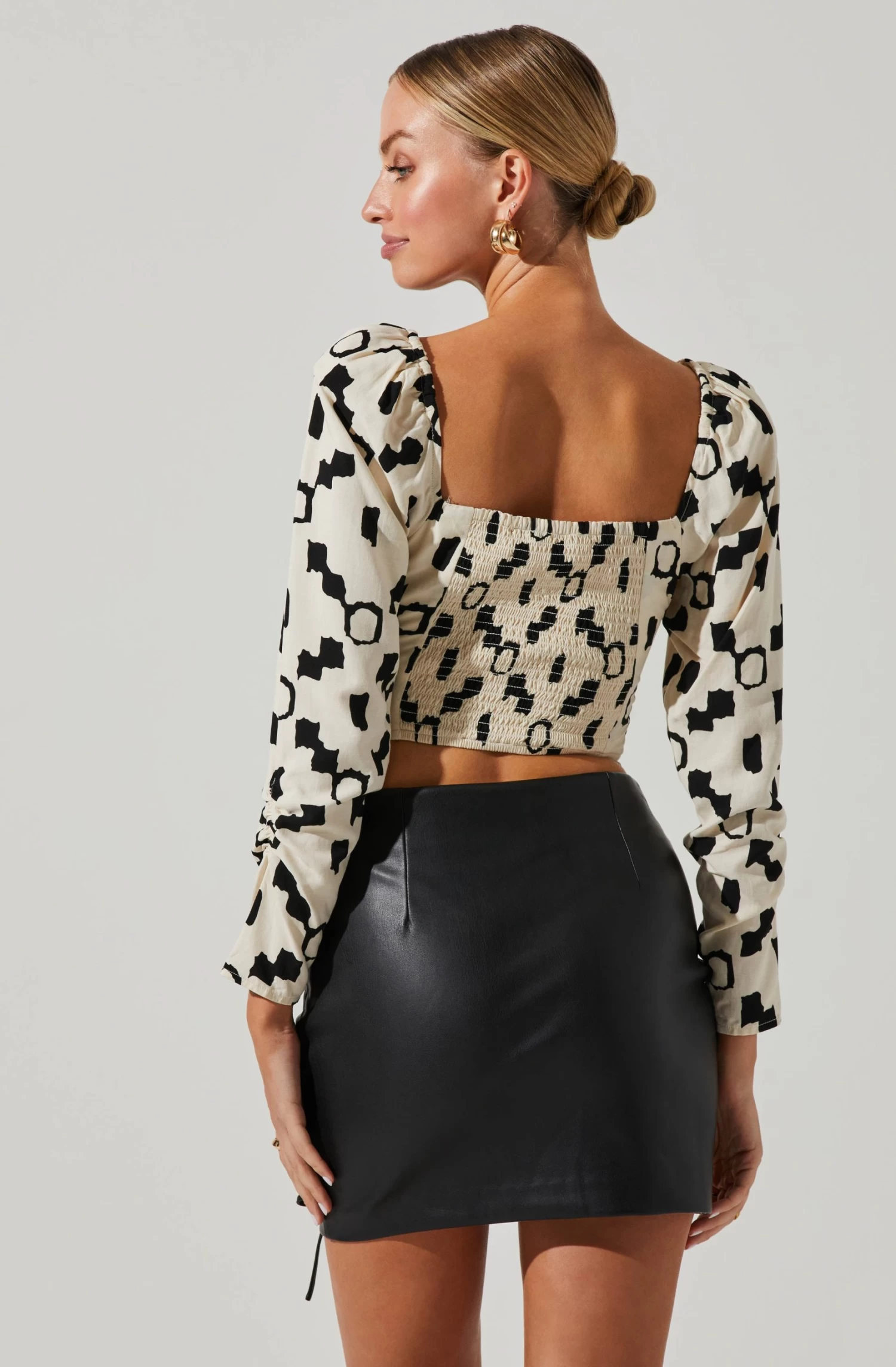 Julia Geo Print Long Sleeve Crop Top