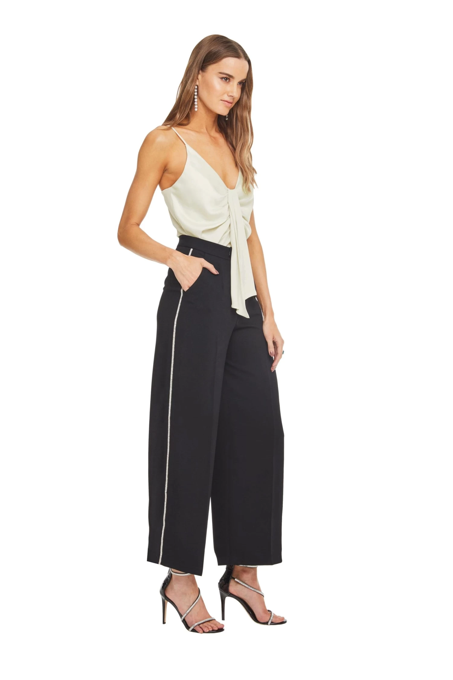 95% Polyester/5% Elastane, Inseam Length: 30″ / Leg Opening: 13 3/4″ / Front Rise: 10 1/4″, (Size M), Dry Clean Only, Wide Leg, Cocktail Pants, Side Slit, Rhinestone Embellishment, Model is Wearing Size S, Model’s Measurements: Height 5’10” // Bust 34″ // Waist 24″ // Hips 34″, Fits True to Size, Style#ACP7014