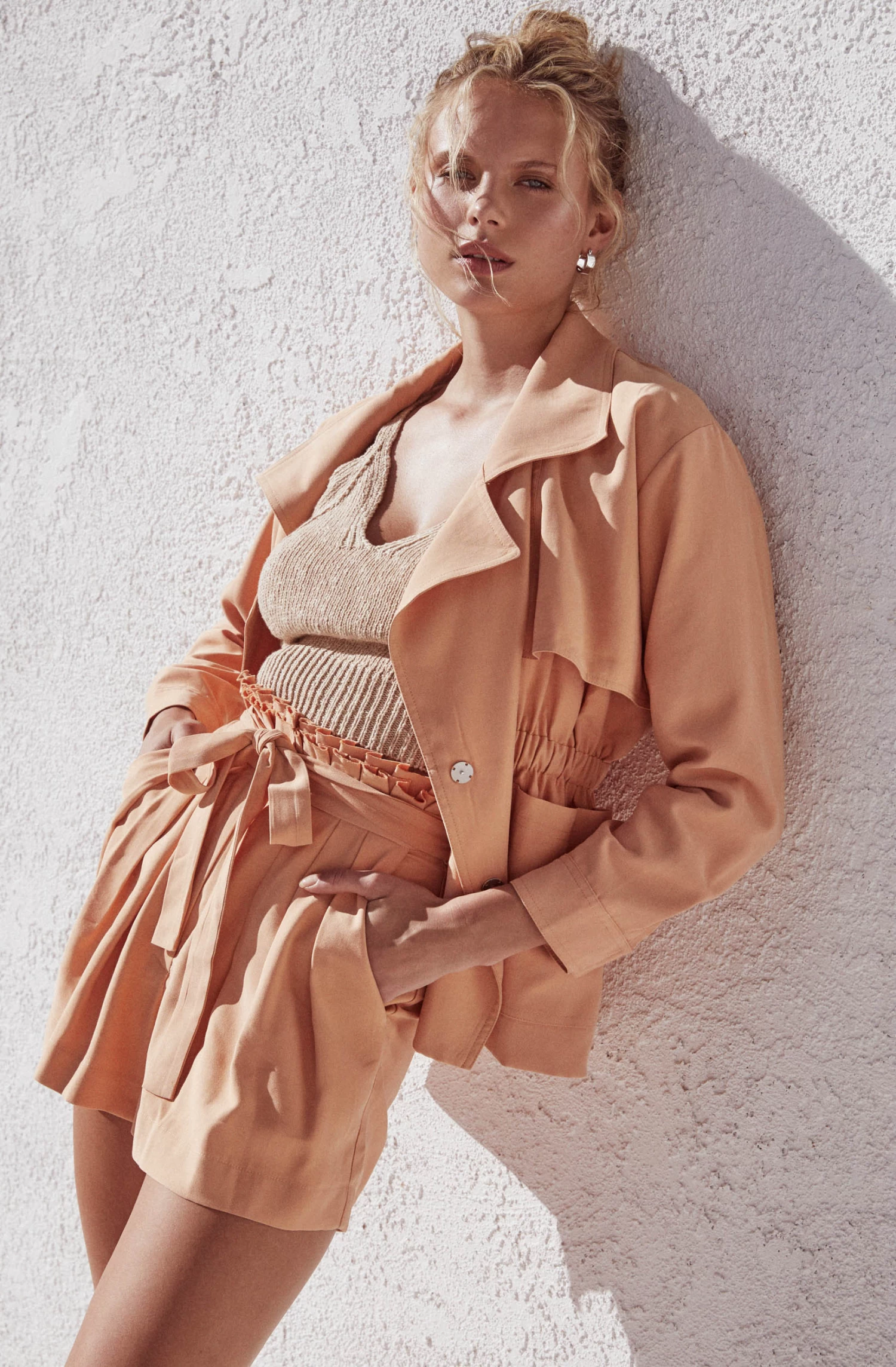 Shorts season is here. This style features a classic paperbag waist with an attached tying belt. Pleated front and functional side pockets.