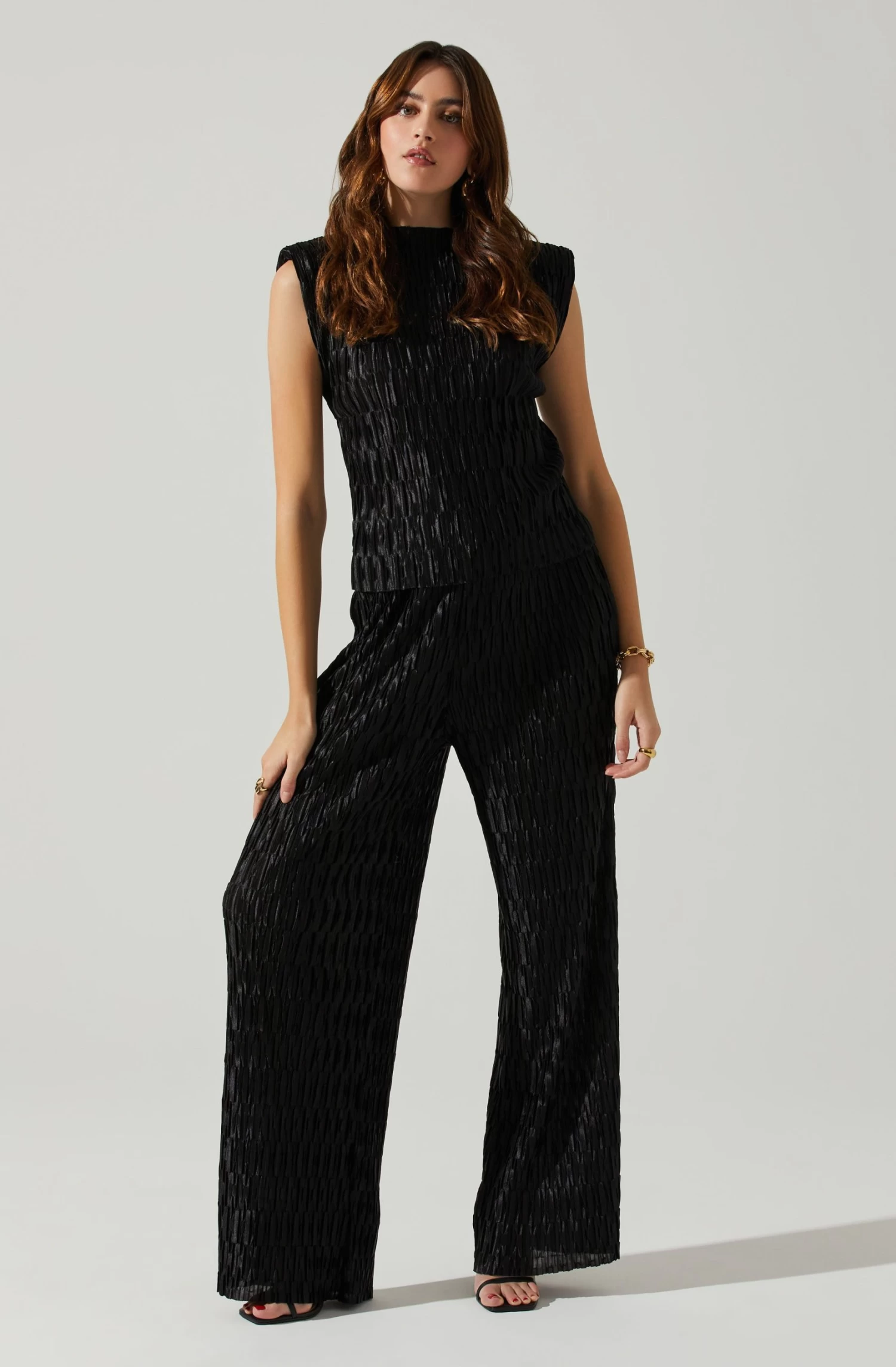 Introducing Savine Textured Pants – stylish & comfortable, crafted from a lightweight blend for an airy feel, with a luxurious textured finish, elevating any outfit.