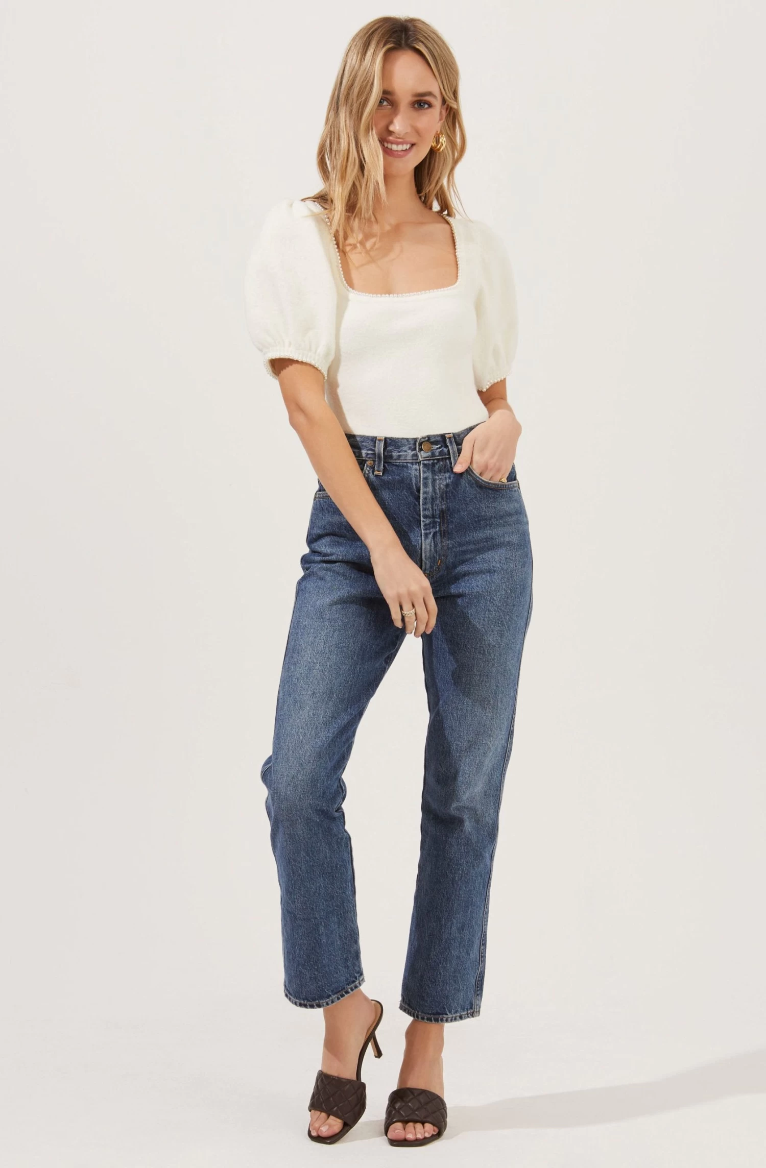 Sweet Life Faux Pearl Trimmed Puff Sleeve Sweater