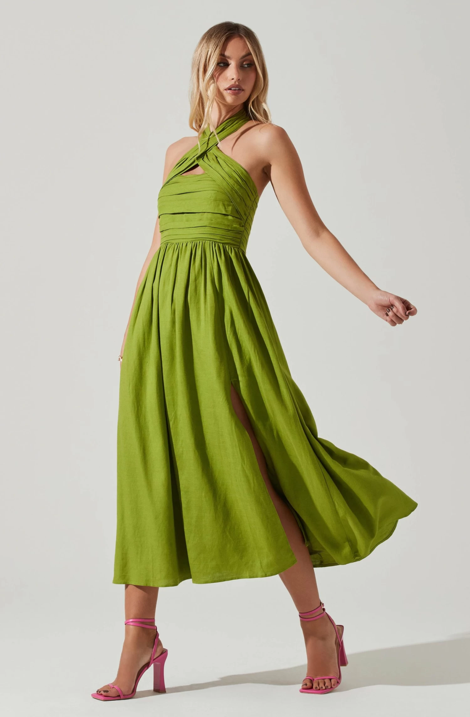 Zaria Pleated Halter Midi Dress
